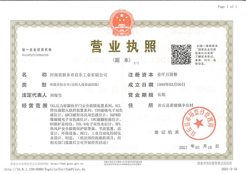 河南省新鄉(xiāng)市啟東工業(yè)有限公司始建于1987年,是專注研發(fā)、生產(chǎn)自動(dòng)化儀器儀表(主要與壓力容器、鍋爐等容器配套使用)的廠家。主要產(chǎn)品有液位計(jì)(磁敏雙色型、磁翻柱型等)系列、烤包器熄火聯(lián)控裝置系列、壓力容器快開門安全聯(lián)鎖保護(hù)裝置系列、鍋爐報(bào)警器系列。二十多年來,公司產(chǎn)品暢銷國(guó)內(nèi)并遠(yuǎn)銷俄羅斯、蒙古與東南亞,深得廣大用戶的信賴和好評(píng)。我們多年來致力于自動(dòng)化儀器儀表的研制生產(chǎn),公司現(xiàn)具有完善的生產(chǎn)、試驗(yàn)、檢測(cè)手段和設(shè)備??萍紕?chuàng)新、誠(chéng)信服務(wù),是我們不變的經(jīng)營(yíng)理念,我們將以強(qiáng)有力的技術(shù)支持及售后竭誠(chéng)為客戶提供良好的服務(wù)?! ?012年我公司成功研發(fā)了KCL系列烤包器熄火聯(lián)控裝置,并于2013年2月2日榮獲中華人民共和國(guó)國(guó)家知識(shí)產(chǎn)權(quán)局辦法的《實(shí)用新型**證書》<**號(hào):2021202257735>該產(chǎn)品廣泛應(yīng)用于唐鋼等大型鋼鐵企業(yè),為烤包器安全作業(yè)提供了有力的保障?! ?002年我公司成功研發(fā)磁敏電子雙色液位計(jì)獨(dú)特的高亮度LED紅綠雙色顯示,獲得了專家的首肯和用戶的一致好評(píng)。在此基礎(chǔ)上我公司研發(fā)人員十年磨一劍,致力于XQFB-1防爆型磁敏雙色液位計(jì)的研發(fā),于2013年12月27日由國(guó)家防爆電器產(chǎn)品質(zhì)量監(jiān)督檢驗(yàn)中心檢驗(yàn)合格并頒發(fā)防爆合格證書<編號(hào):cnex19.0883>。該產(chǎn)品性能得到了充分的發(fā)揮,廣泛應(yīng)用于含有Ⅱ類A·B級(jí)T1-T4組可燃?xì)怏w或蒸汽與空氣混合形成的爆炸性混合物的0區(qū)、1區(qū)危險(xiǎn)場(chǎng)所。連接用戶DCS或PLC系統(tǒng)實(shí)現(xiàn)遠(yuǎn)距離集中顯示和控制,從而實(shí)現(xiàn)節(jié)能、數(shù)字化管理。為用戶增加了一定的經(jīng)濟(jì)效益和社會(huì)效益,。2014年公司成功申請(qǐng)了夢(mèng)潤(rùn)儀表的logo,新的品牌新的形象,夢(mèng)潤(rùn)儀表是啟東的LOGO, 歡迎新老用戶前來洽談合作?! ∥覀円蝗缂韧刈⒅乜蒲械耐度?,憑借產(chǎn)品的不斷更新、加大科技含量,進(jìn)一步拓展市場(chǎng)。我們相信品質(zhì)成就未來,以過硬質(zhì)量、優(yōu)惠價(jià)格、完善的售后服務(wù)熱忱歡迎廣大客戶來我司視察指導(dǎo)、洽談業(yè)務(wù);精誠(chéng)合作,共創(chuàng)輝煌!